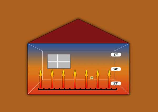 Нагрев ламината или другого материала происходит снизу по причине попадания на него излучения. После прогрева поверхности пола по толщине происходит отдача тепла в воздушную среду отапливаемого помещения.