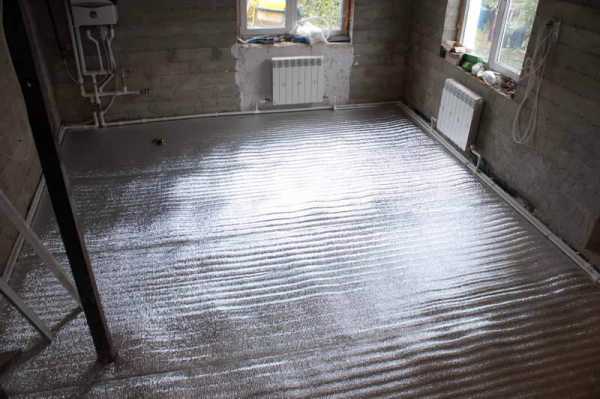 Во время работ под систему подогрева пола следует использовать слой дополнительной теплоизоляции. Благодаря этому тепло не будет уходить вниз, а станет подниматься вверх.