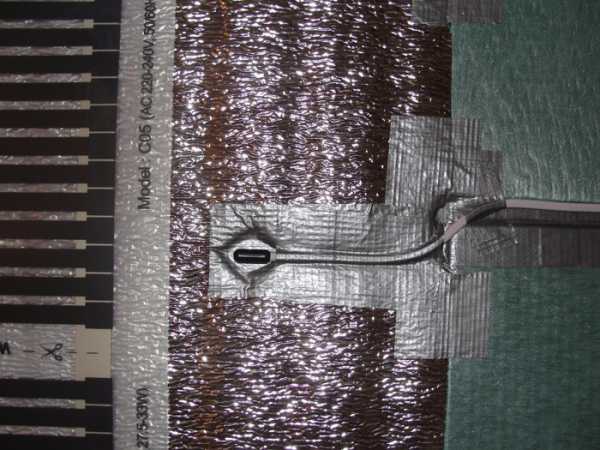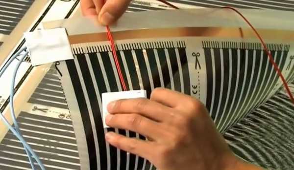 Провода следует укладывать параллельно пленке, а в местах расположения медных прожилок на пленке закрепить плоскогубцами. Места соединений следует отделать теплоизолирующим материалом. Концы медных проводников можно обработать при помощи силиконового герметика.
