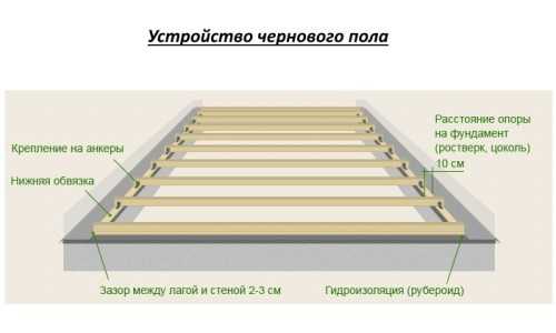 Черновой пол по лагам: устроство, утепление, гидроизоляция