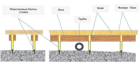 Схема фанерного основания пола на лагах.
