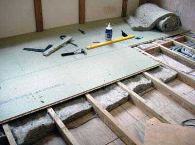 Примечание: если новый настил самоприлегающий (пробка, мармолеум) то маты можно стелить по фанере. Это удобно, если фанерная подушка на обрешетке сделана ранее.