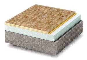 - Плавающий настил из шпунтованных фанерных плиток 12-16 мм на жидких гвоздях.