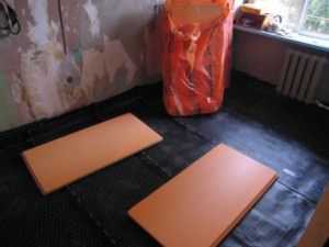 - Затем на неё кладётся гидроизолирующий полиэтилен или влагонепроницаемая мембрана и только потом сверху кладётся пеноплэкс.