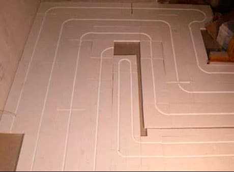 Металлопластиковые трубы, уложенные на полистирольную плиту
