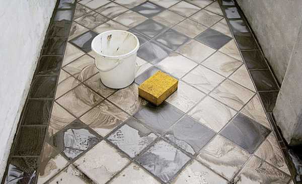Это заключающий этап работ с плиткой. Сухая смесь разводится водой до состояния густой сметаны, а затем резиновым шпателем начинают заполнение смесью швов между плитками.