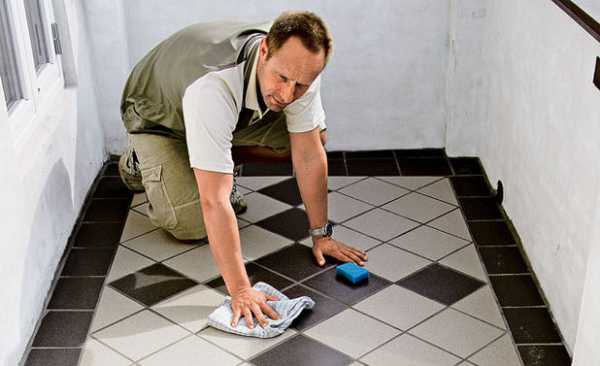 Затирка швов не терпит спешки, поскольку в случае погрешности в работе исправить недочет будет практически невозможно. После каждых полутора-двух квадратных метров плитки удаляйте излишки раствора из швов пальцем, а с поверхности плитки сухой тряпкой.