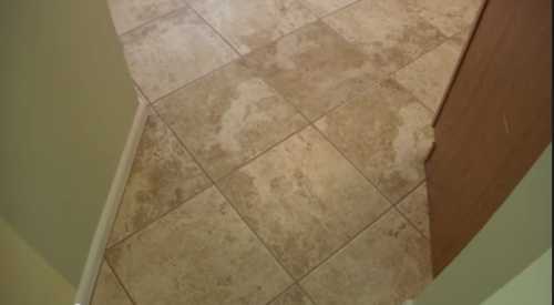 Непрактичность облицовки по нанесенным на полу, диагоналям в том, что приходится начинать с угла или какой либо стены. Но самым видным местом часто становится проходная часть помещения и дверной проем без порога. В этом месте встречается, обычно, два различных покрытия. Если начинать клеить плитку с угла, можно получить на проходе калейдоскоп кусков.