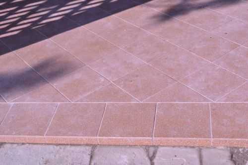 Это поможет избежать появлению кусочков на краю площадки и образованию резанного, не всегда ровного края. Маленькие отрезки плохо держатся. особенно на краю ступеней или площадок. Целый ряд плиток по периметру, также, создает визуальную рамку. А рамка в дизайне всегда выигрышный вариант. Будь это рамка плинтуса или рамка потолочного фриза.