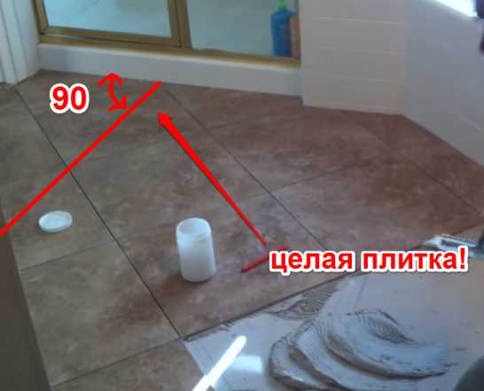 На видео показан пример, разметки пола перед тем, как укладывать кафель. Кладка начинается с целой плитки.