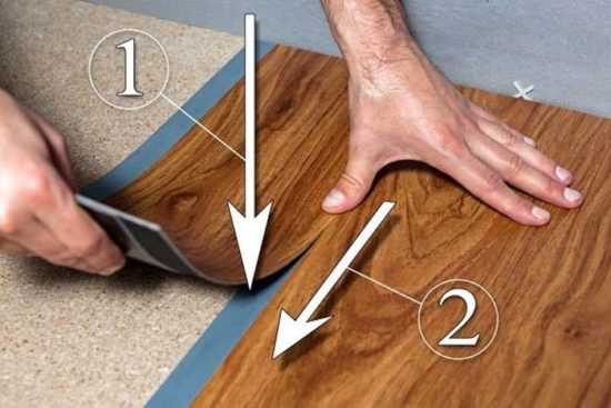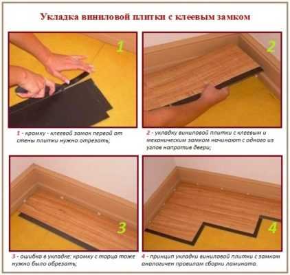 - виниловая плитка для пола с замком и клеящейся лентой – не нуждается в полном приклеивании, достаточно лишь прочно соединить замки между элементами.