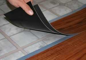 - Самые удобные для укладки полы – это винил из самоклеящейся плитки. С тыльной стороны плитки снимают защитную плёнку, освобождая клеевую поверхность. Плитку прижимают к основанию пола и затем прокатывают поверхность резиновым валиком.