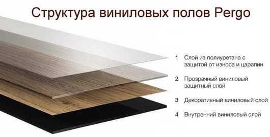 Вкратце, виниловое покрытие состоит из нескольких слоев: