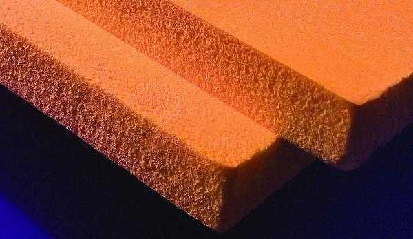 Экструдированный пенополистирол — новое слово в сфере теплоизоляционных технологий. Это материал с равномерной структурой, которая состоит из полностью закрытых ячеек размером 0,1-0,2. При этом заполняются лишь ячейки, расположенные на поверхности, а внутрь экструдированного пенополистирола влага не попадает. Плиты экструдированного пенополистирола обычно цветные, чаще всего — оранжевые.