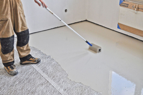 Его наносят на черный пол перед укладкой виниловых досок или плитки, чтобы создать ровную поверхность.
