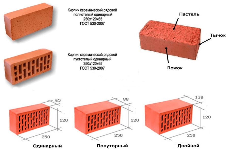 Размеры, формы, типы и сорта кирпича