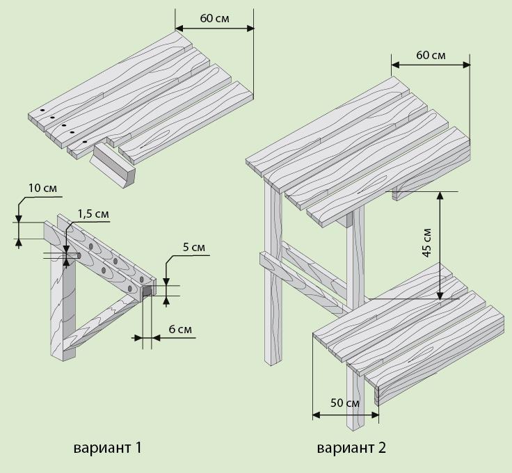 Высота и ширина полков для сидения