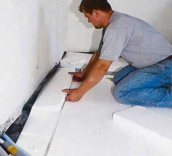 Лучше всего в качестве материала для утеплителя использовать пенополистирол. Перед тем как уложить этот материал на основание, его необходимо покрыть рулонным пенофолом.