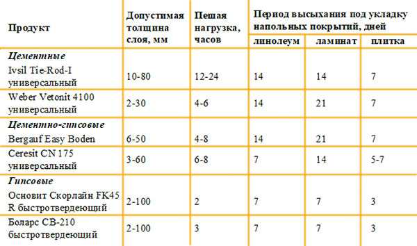 Таблица 1. Разновидности наливных полов