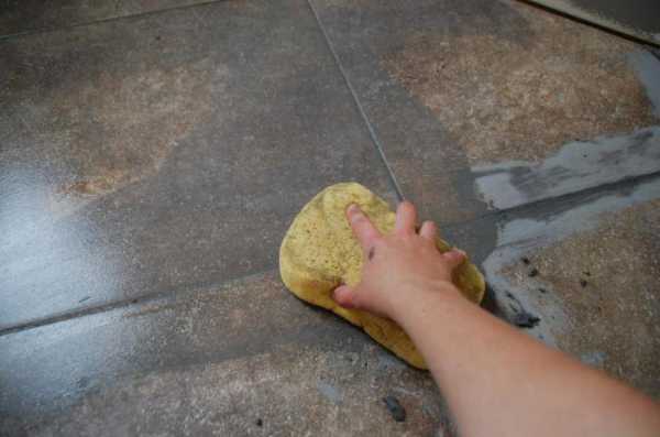 Действуйте осторожно, чтобы в затирочных швах не образовывались канавки. Ополаскивайте губку, как только поры губки наполнятся частицами цемента и песка, и после хорошо ее отжимайте. Если до начала очистки прошло не слишком много времени, то вы сможете удалить излишки затирки с поверхности плиток за два или три прохода.