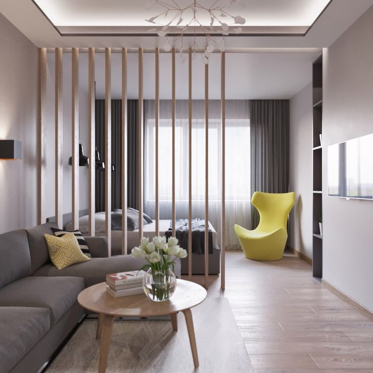 С правильной мебелью вы можете легко превратить свою квартиру-студию в 1-комнатную квартиру. Вы можете либо разделить пространство прозрачной книжной полкой, либо получить временную конструкцию джали.