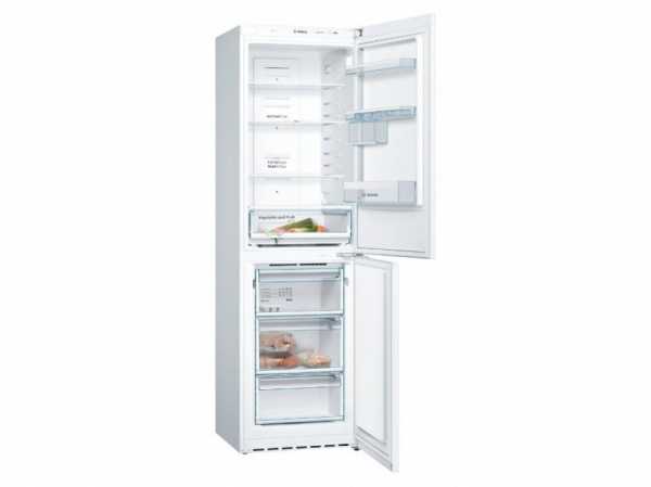 Bosch KGN39VW17RУстройство выполнено с приятным дизайном. Цвет модели – белый. Система No Frost, которой оборудованы обе камеры, полностью исключает образование льда внутри и избавляет от ручного размораживания. С помощью электронного управления есть возможность регулировать температуру. При внезапном отключении электричества автономное поддержание холода будет сохраняться до 15 ч.