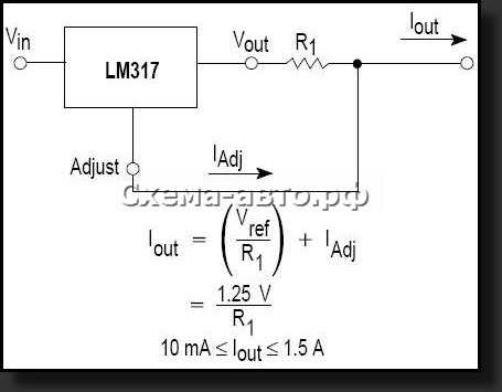 Для стабилизации тока используются приборы, их называют драйверами. Вот самый простой драйвер — схема на микросхеме-стабилизаторе LM317. Главное достоинство этой микросхемы — её очень трудно спалить.