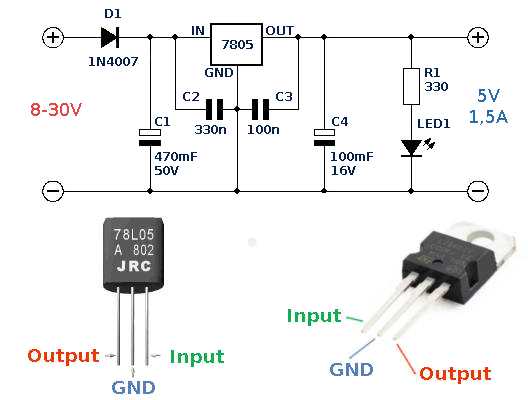 Нам потребуется микросхема и трехвыводной стабилизатор напряжения.