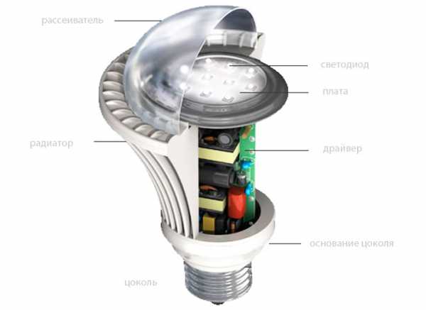 Светодиодная лампа LED: устройство лампы.