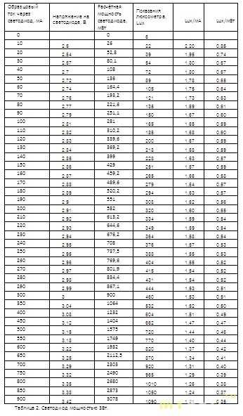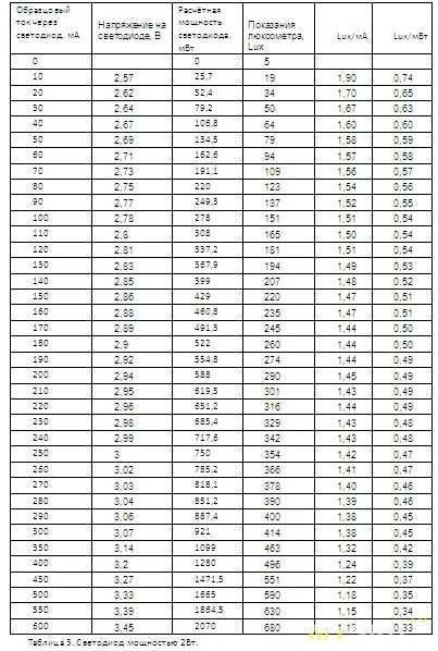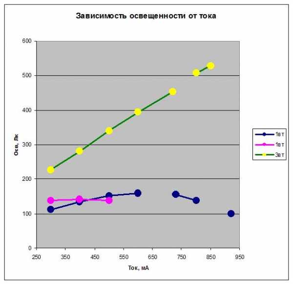 Ну а теперь можно сделать и вывод. Естественно я не могу выдержать тех условий, которые необходимы для чистоты эксперимента. У меня нет такой лаборатории. Но, тем не менее, приблизительно оценить характеристики светодиодов смог. А нам больше и не надо. Главное, что получена зависимость. Осталось купить «правильные» светодиоды. Лучше покупать светодиоды мощностью 3Вт (главное, чтобы продавец не обманул). Они ярче светят, соответственно меньше греются. Это увеличивает их срок службы.