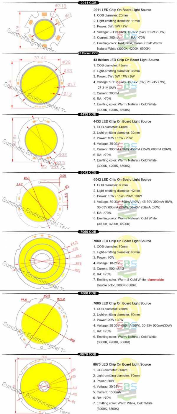 Светодиоды имеют типоразмер 2820, что означает 28мм диаметр платы, 20мм диаметр самой светодиодной сборки (COB).