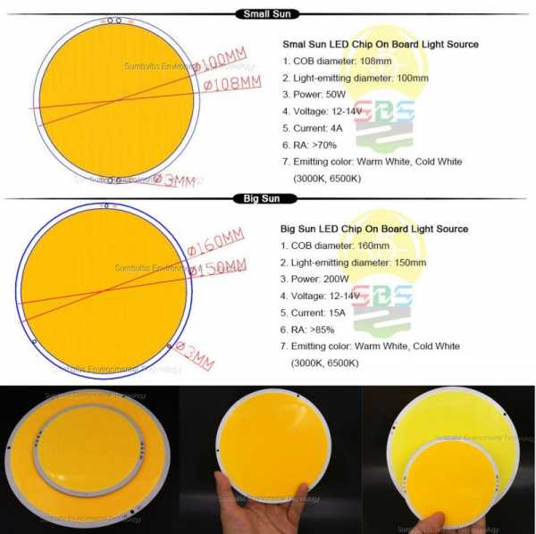 Кроме того меня заинтересовали и весьма мощные и габаритные варианты, особенно второй, с диаметром 160мм и мощностью 200 Ватт, правда стоит он около 23 долларов. Но с другой стороны, если надо будет, китайские производители наклепают хоть 500 Ватт, главное найти основание, потому как процедура сборки таких модулей предельно проста — делаем плату, паяем к ней светодиоды, клеим на металлическое основание, заливаем люминофором или специальным компаундом.