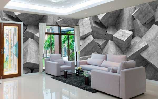 Фотообои с объемным изображением бывают разных видов. Соответственно, благодаря рисункам можно подобрать их под тот или другой интерьер. Стандартными считаются обои с обыкновенными рисунками. Чаще всего к ним относятся геометрические узоры или абстракция.