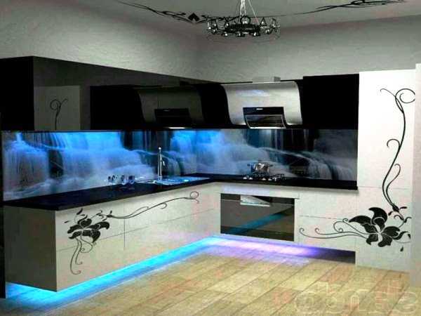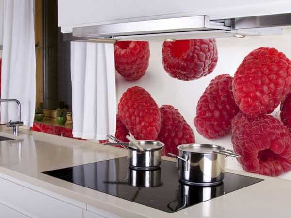 Совет! Любителям ягод профессионалы рекомендуют такие модные тренды как объемные ягоды клубники, малины. Кроме того, в рабочей зоне кухни будет уместно изображение водопада.