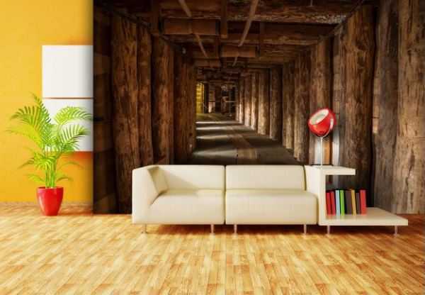 Эти обои не хуже стены из зеркал расширяют пространство. Колонны, тоннели, несуществующие комнаты могут появиться. Любая стена с их помощью исчезнет. Желательно стремиться к тому, чтобы был сохранён баланс между идеальной оптической иллюзией, параллельным миром, другой реальностью и ощущением уюта, безопасности.