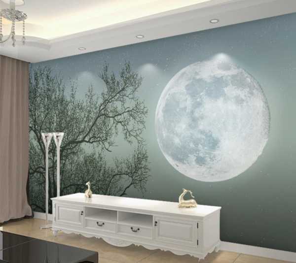 Таких обои можно разместить в детской комнате, при этом освещение обоев не яркое, так что родители могут не переживать, что ребенку будет сложно заснуть.