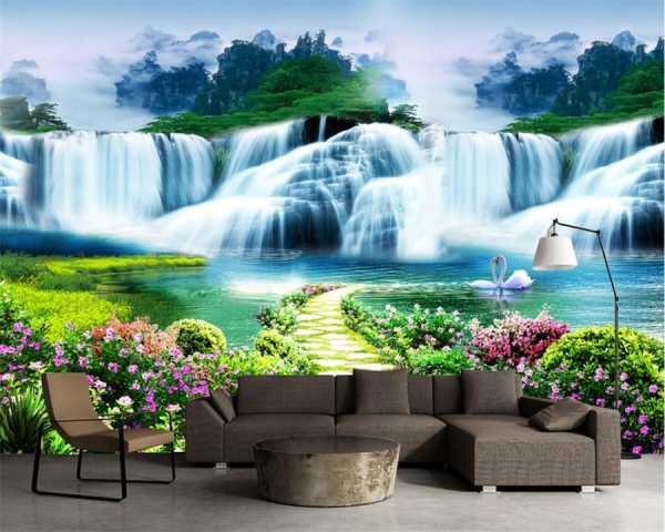3D эффект многим знаком по особому формату фильмов, которые смотрят в специальных очках. Рисунок на обычных обоях мы воспринимаем плоским, лишенным объема. Рисунок 3д обоев кажется трехмерным, т.е. имеющим не только ширину и высоту, но и глубину. Если изображена дорожка, уходящая вдаль, то она видится как реальная тропинка, конец которой удален от наблюдающего. Если изображены листья, то кажется, что какие-то из них расположены ближе, а какие-то дальше. Может даже появиться ощущение, что изображенные объекты выпуклые, и рисунок сходит со стены в пространство комнаты. Все это — игра света, которая достигается за счет нанесения особых преломляющих и отражающих свет частиц. Выбор освещения для помещения, в котором на стены наклеены фотообои, играет не последнюю роль. В частности, существуют даже некоторые правила по размещению источников света.