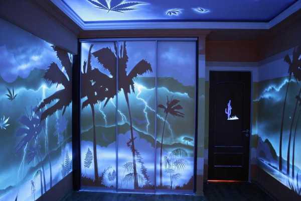 Помните! Флуоресцентные обои подходят не только для оформления стен, но и потолка.