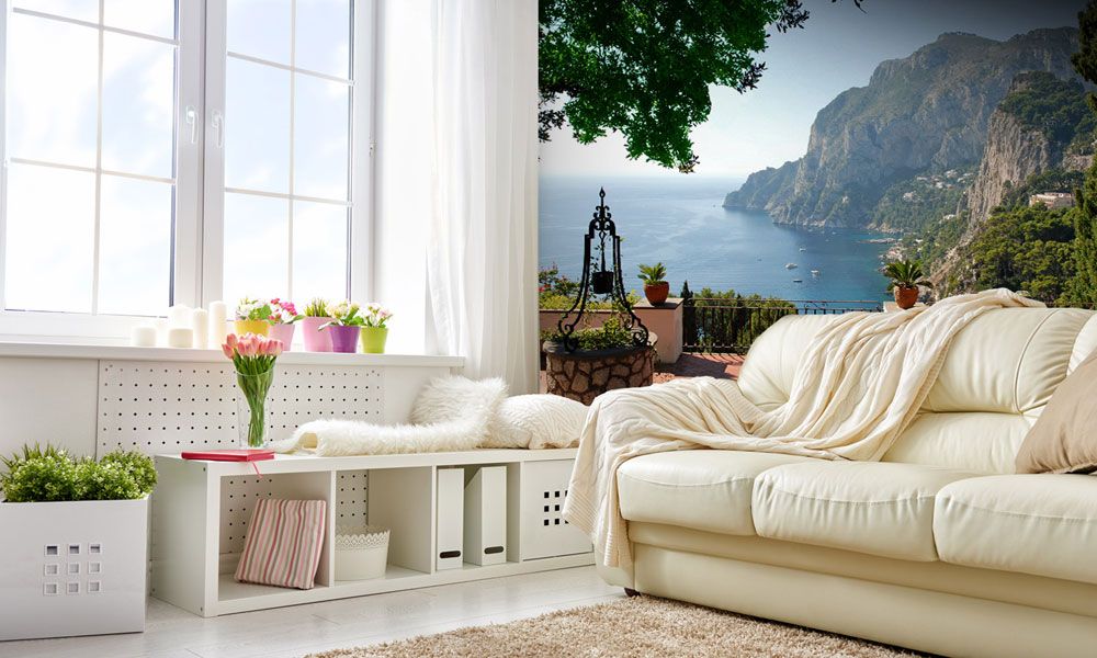 Использование фотоизображений с четкими передним и задним планами — отличный способ придать стенам ощущение глубины. На фреске выше это ощущение длины усиливается линиями на дороге, которые привлекают наше внимание и направляют его к «задней» фреске. В небольших квартирах или комнатах это может способствовать появлению «более глубоких» стен, которые находятся дальше, чем они есть на самом деле, превращая 2D-поверхность во что-то более визуально привлекательное.