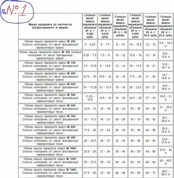 Ну что, что бы узнать точный вес керамзита в мешке перейдём к таблице на рисунке под №1