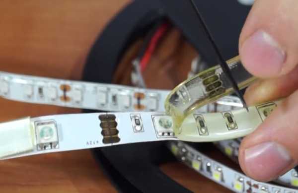 Например у ленты SMD3528 на таком сегменте располагается 1 резистор и 3 светодиода. У ленты SMD5050 для каждого светодиода установлен свой резистор. По краям сегмента расположены линии разреза и места под пайку. Таким образом при необходимости ленту можно укоротить только на длину кратную длине сегмента.