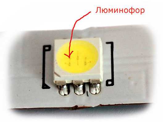 Сам светодиод состоит из корпуса, в который помещены излучающие кристаллы-чипы. Все это сверху залито компаундом. Чипы в дешевых и дорогих лентах разные.