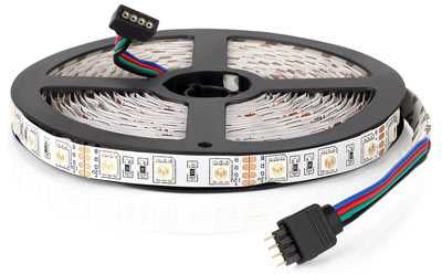 Она примерно в 3 раза ярче чем SMD3528. Одно из главных ее преимуществ — способность менять цвета под управлением RGB контроллера.