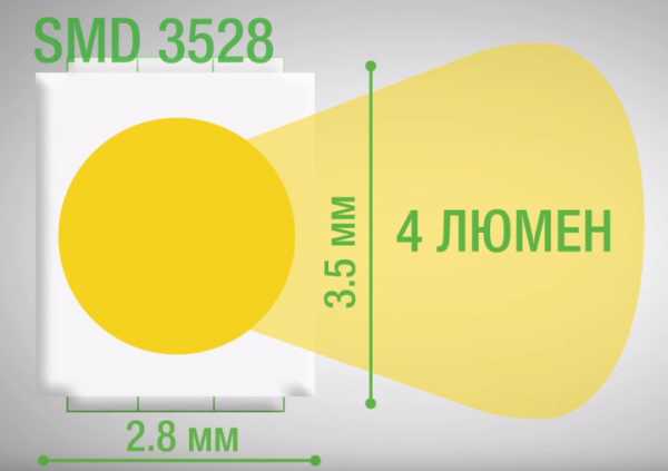 - SMD 3528 — 70 lm / W;