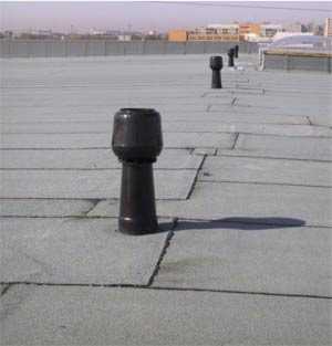 Пластиковые аэраторы не подвержены коррозии и могут использоваться в различных климатических поясах. На плоских кровлях простой конфигу рации аэраторы устанавливаются равномерно по всей площади кровли в наиболее высоких точках кровельного ковра в местах стыков теплоизоляционных плит.