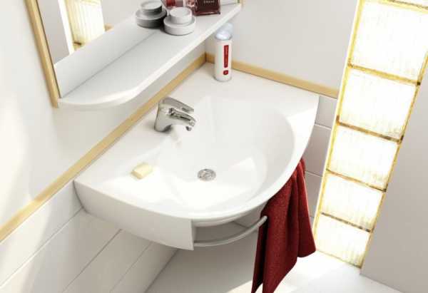 Характерной чертой для акрилового умывальника в ванную являются широкие плоские края, на которых удобно размещать косметику, мыло, шампуни и прочее. Это избавляет от необходимости монтировать полочки, что не всегда возможно и не всегда эстетично.