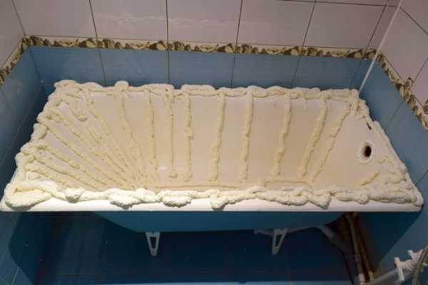 Такая пена не расширяется и не деформирует вкладыш. Смазывание силиконом вокруг отверстий слива и перелива предотвратит протекание воды между старой и новой акриловой ванной.