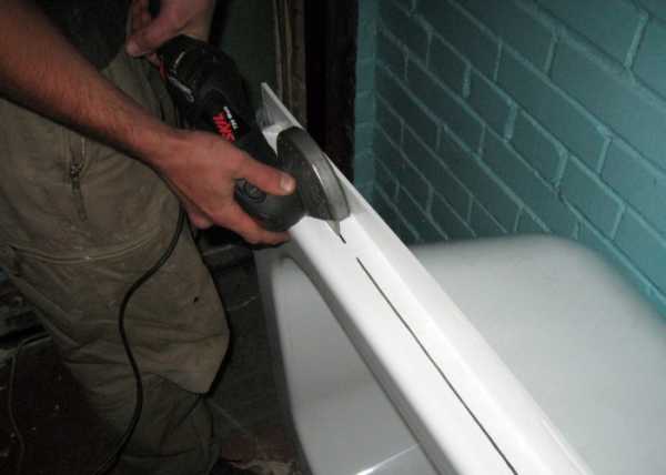 Использовать болгарку для подрезки края можно только в том случае, если вы владеете ею виртуозно и можете резать точно по намеченной линии. Для вырезания отверстий она очень даже пригодится. Нужно будет найти коронки соответствующего размера и с их помощью в нужных местах сделать отверстия для слива и перелива.