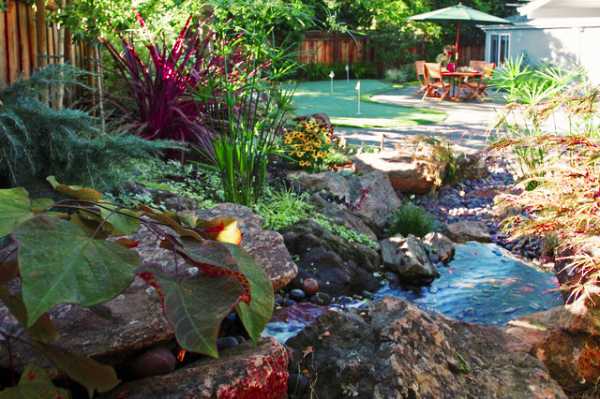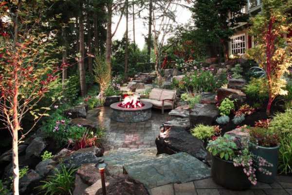 Очень интересные визуальные эффекты получатся при использовании естественных неровностей рельефа – вписанные в природный ландшафт элементы декора станут великолепным его дополнением.