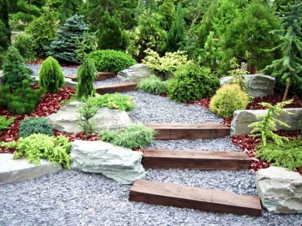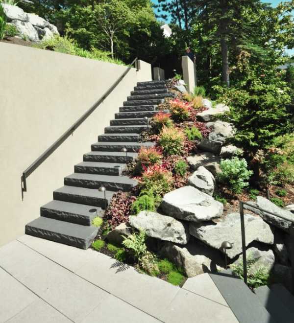 Соединение функциональности и декоративной функции: каменные ступени и скалистый альпинарий